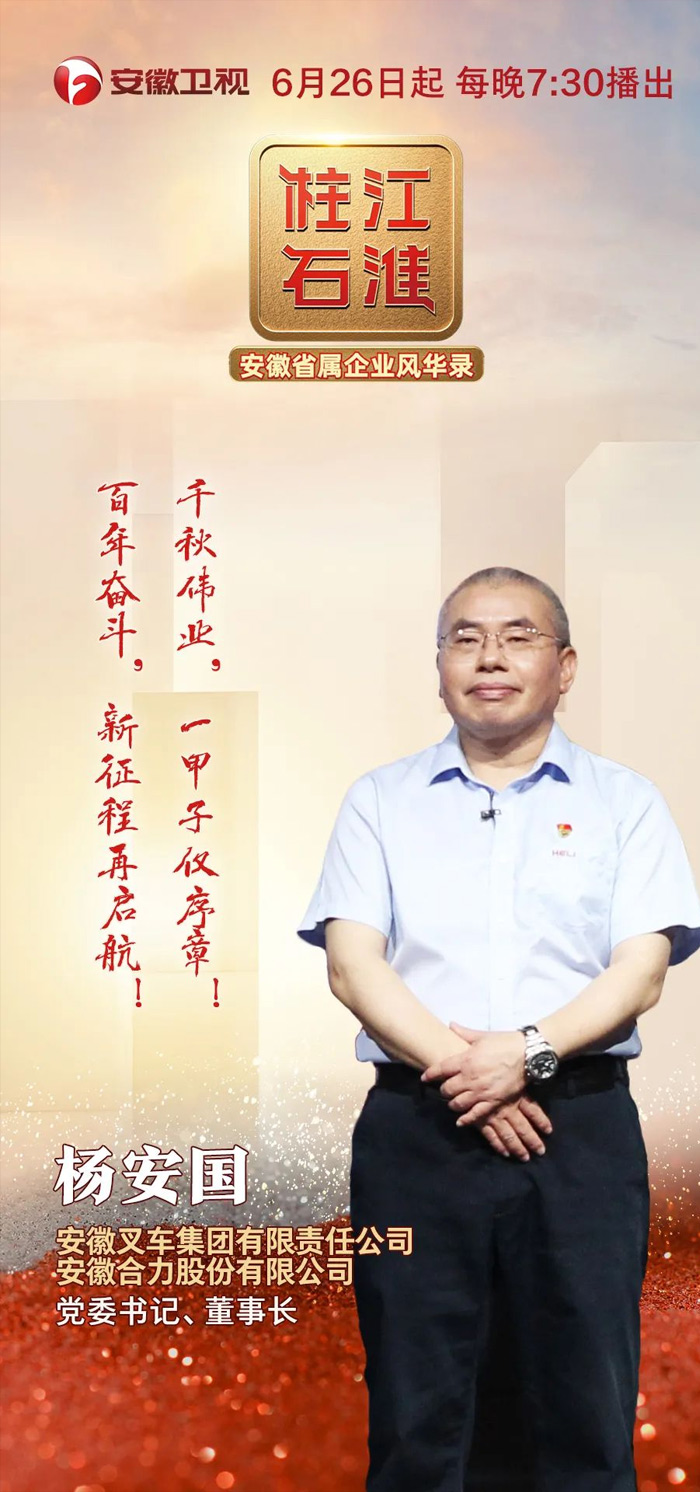 ??百年激蕩,江淮柱石。大家好,我是安徽叉車集團有限責任公司、安徽合力股份有限公司黨委書記、董事長楊安國。