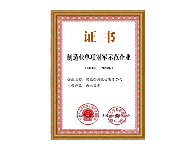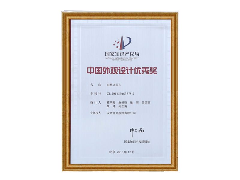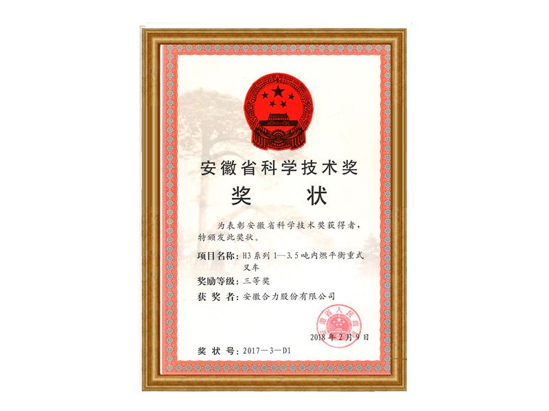 2018安徽省科學技術獎三等獎H3系列1-3.5噸內燃平衡重式叉車