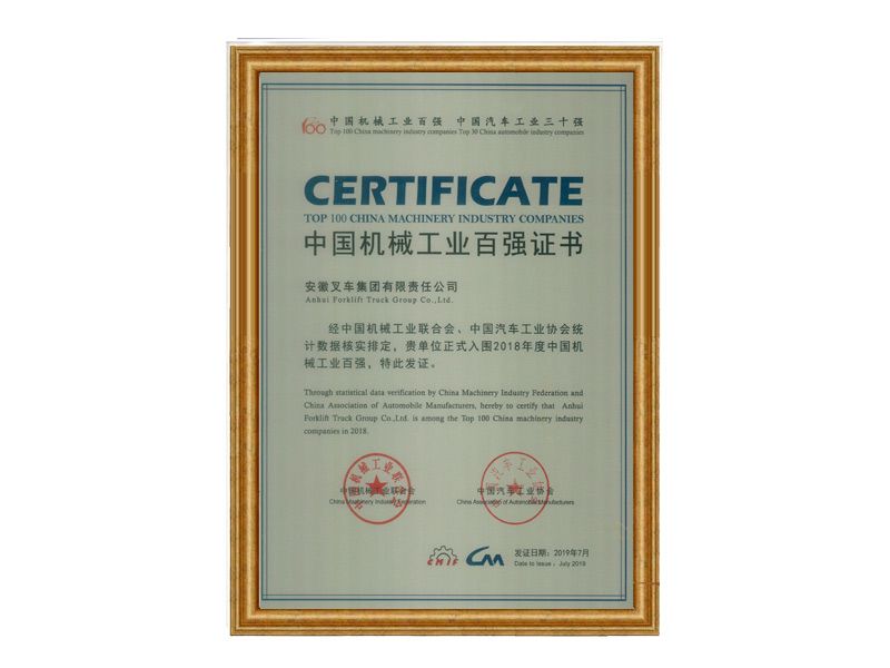 2018安徽叉車集團有限責任公司2018年中國機械500強